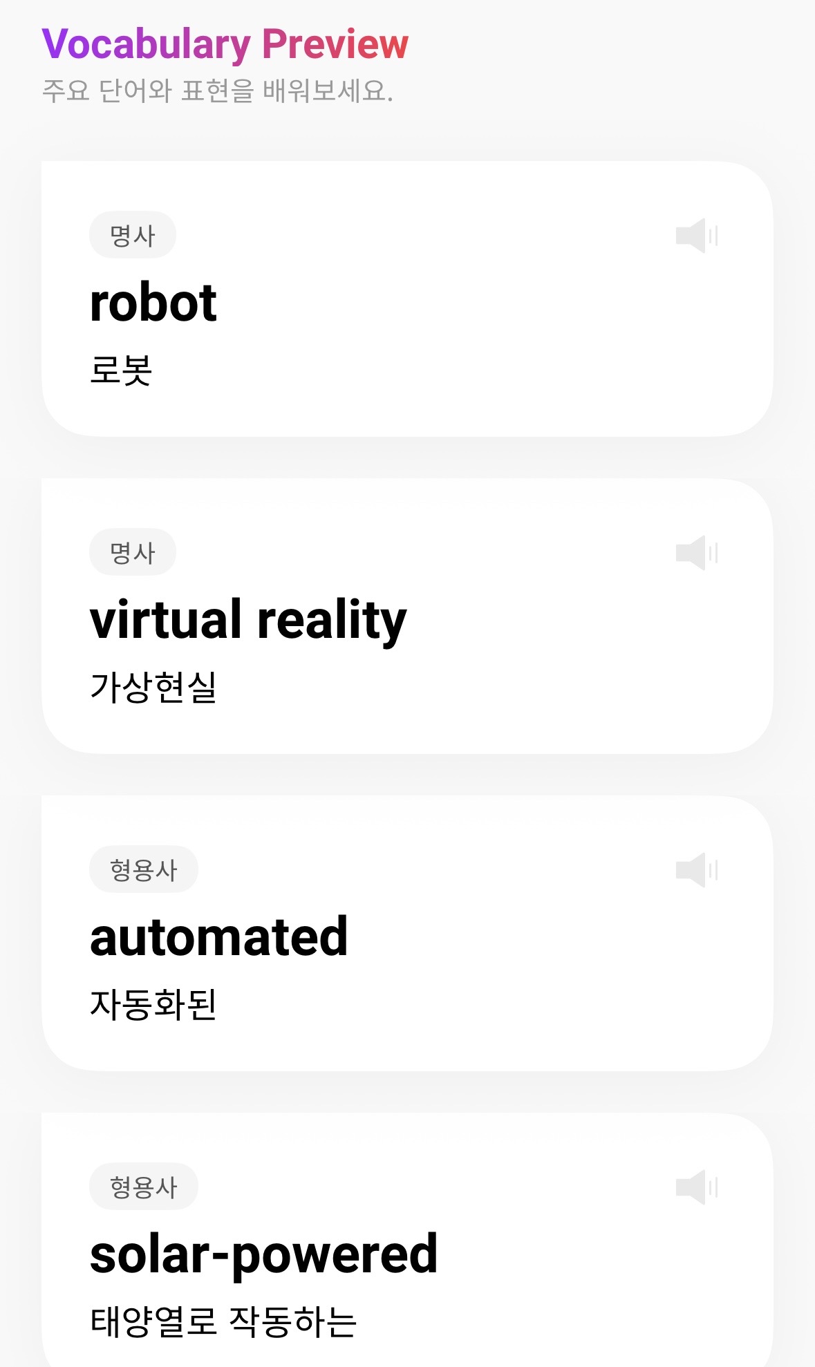 - 그날의 교재는 학습자의 레벨, 선호에 따라 약간식 다르게 구성된다.